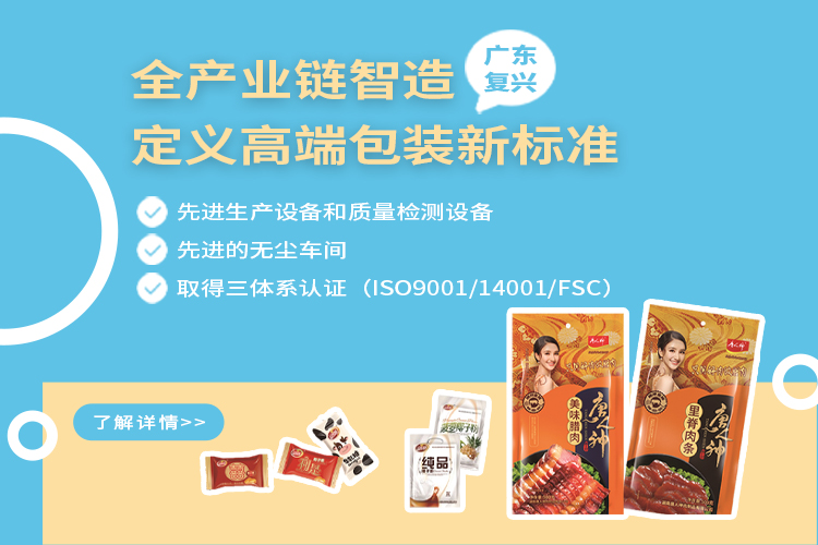 復(fù)興是一家專(zhuān)業(yè)從事軟包裝生產(chǎn)的現(xiàn)代化環(huán)保型印刷企業(yè),主要生產(chǎn)各類(lèi)材質(zhì)的鋁塑封口膜,各種結(jié)構(gòu)的自動(dòng)包裝膜,高溫蒸煮袋,真空袋等高質(zhì)量的包裝制品。從進(jìn)口環(huán)保原材料的采購(gòu)到吹膜、印刷、復(fù)合、制袋,全程一條龍生產(chǎn),公司不斷引進(jìn)國(guó)外先進(jìn)生產(chǎn)設(shè)備,高速印刷機(jī),高速?gòu)?fù)合機(jī),智能化制袋機(jī)和先進(jìn)齊全的質(zhì)量檢測(cè)設(shè)備,以及業(yè)內(nèi)先進(jìn)的無(wú)塵車(chē)間。復(fù)興嚴(yán)格把控質(zhì)量,相繼取得了ISO9001質(zhì)量管理體系,ISO14001環(huán)境管理體系和FSC森林監(jiān)管體系認(rèn)證。
